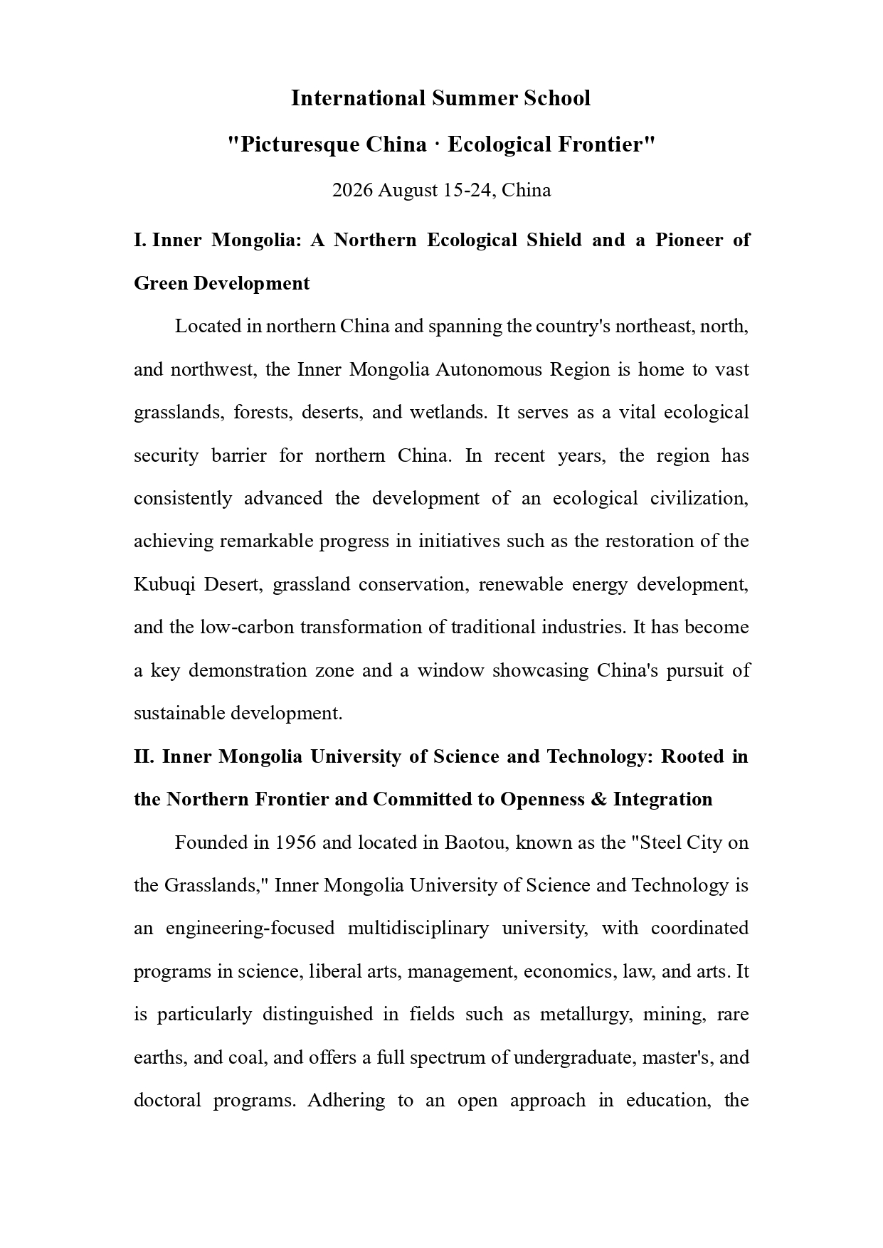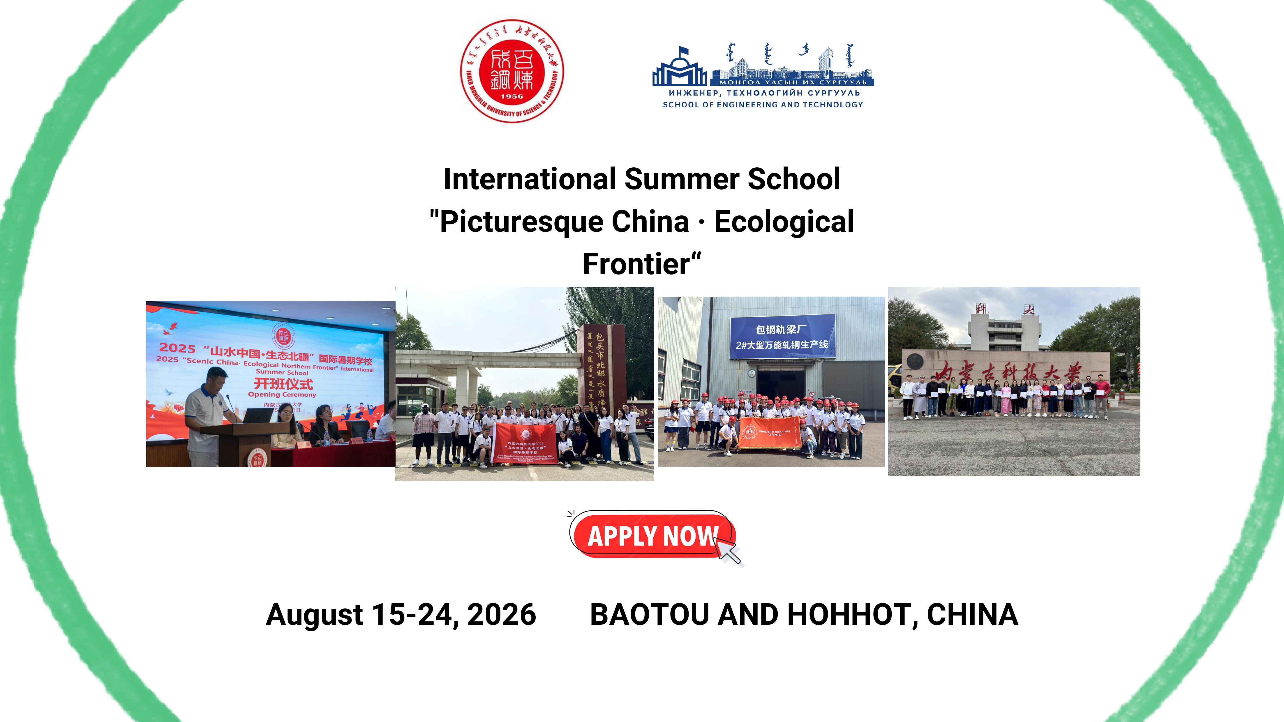 МУИС-ийн Инженер, Технологийн сургууль ӨМӨЗО-ы ШУТИС-тай хамтран ажиллах гэрээний хүрээнд зохион байгуулах “Picturesque China - Ecological Frontier” олон улсын зуны сургууль