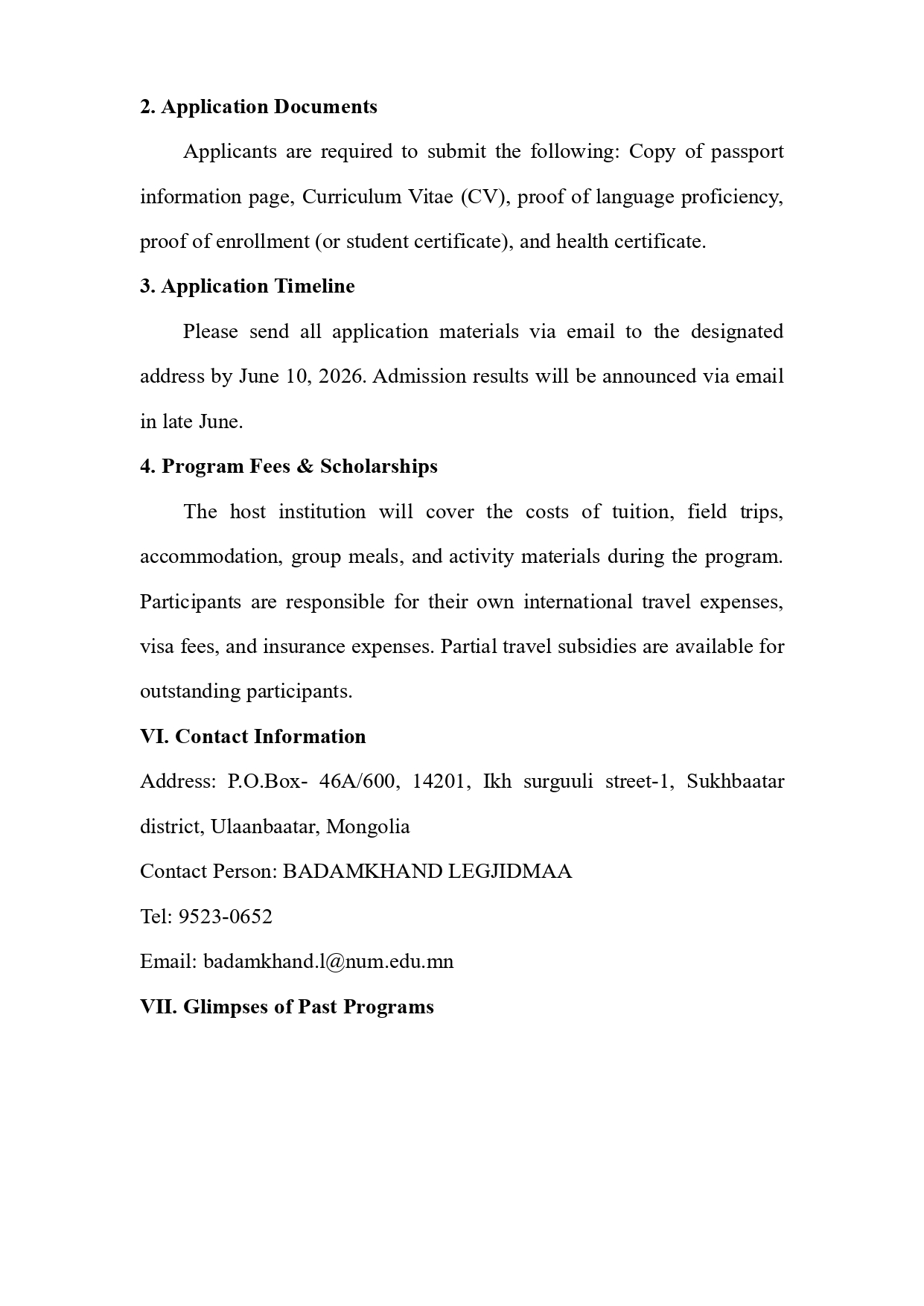 - Англи эсвэл Хятад хэлээр чөлөөтэй харилцах, академик түвшинд ойлгох чадвартай байх;