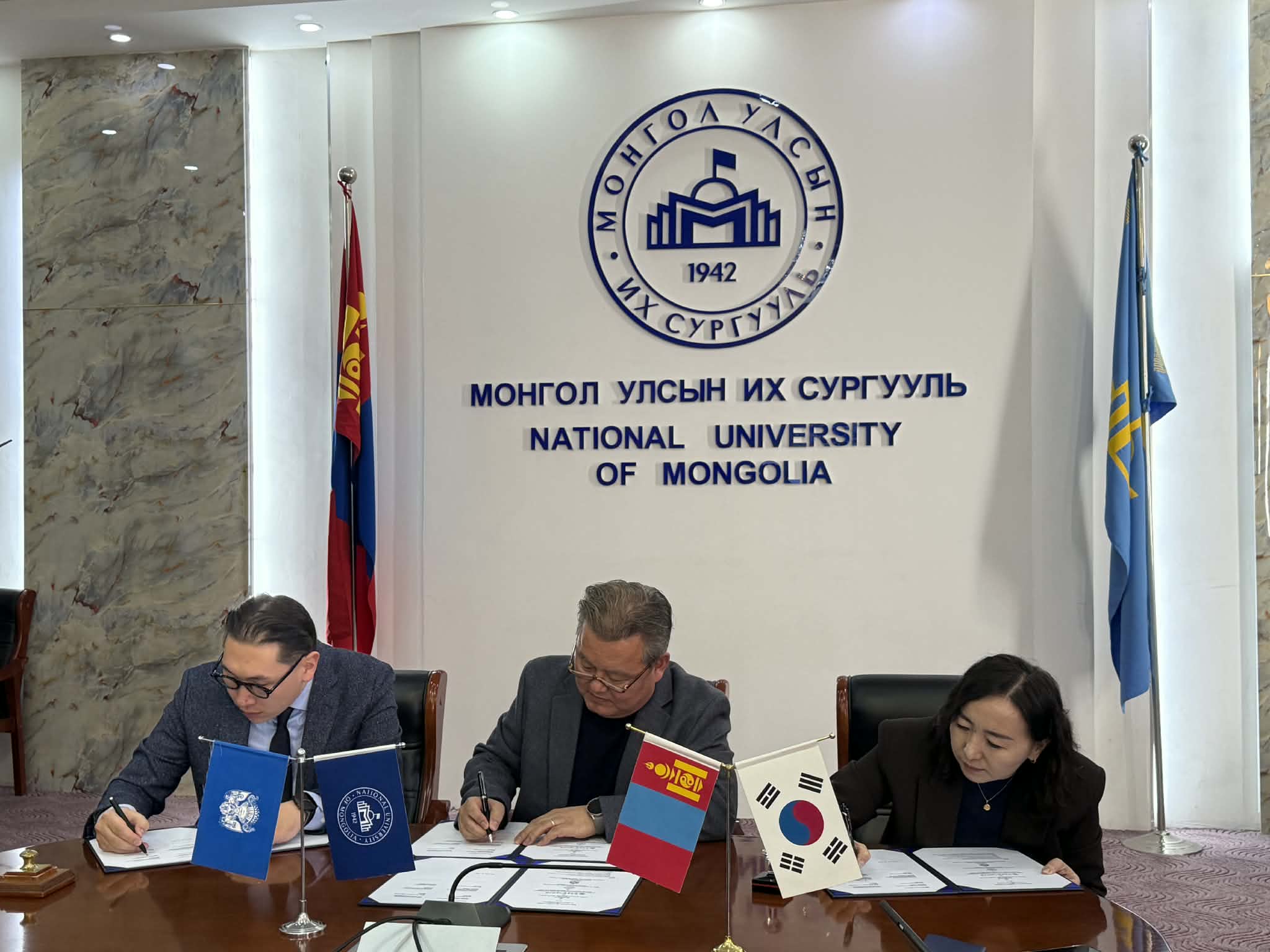 2026 оны 2 дугаар сарын 25-ны өдөр Инчоны инновацын кластер / Incheon Innovation Cluster (БНСУ), Хүрээлэн буй орчны нэгдмэл технологийн хүрээлэн / Institute of Environmental Convergence Technology (БНСУ), Монгол Улсын Их Сургууль / National University of Mongolia-ийн дэргэдэх Хүрээлэн буй орчны технологи, хөгжлийн төв / Center for the Environmental Technology and Development болон Бизнес, инновацын газар (Нийслэлийн Засаг даргын хэрэгжүүлэгч агентлаг) / Business and Innovation Agency хооронд “IIC / Incheon Innovation Cluster” салбар оффис байгуулах тухай Харилцан ойлголцлын санамж бичигт гарын үсэг зурлаа.
