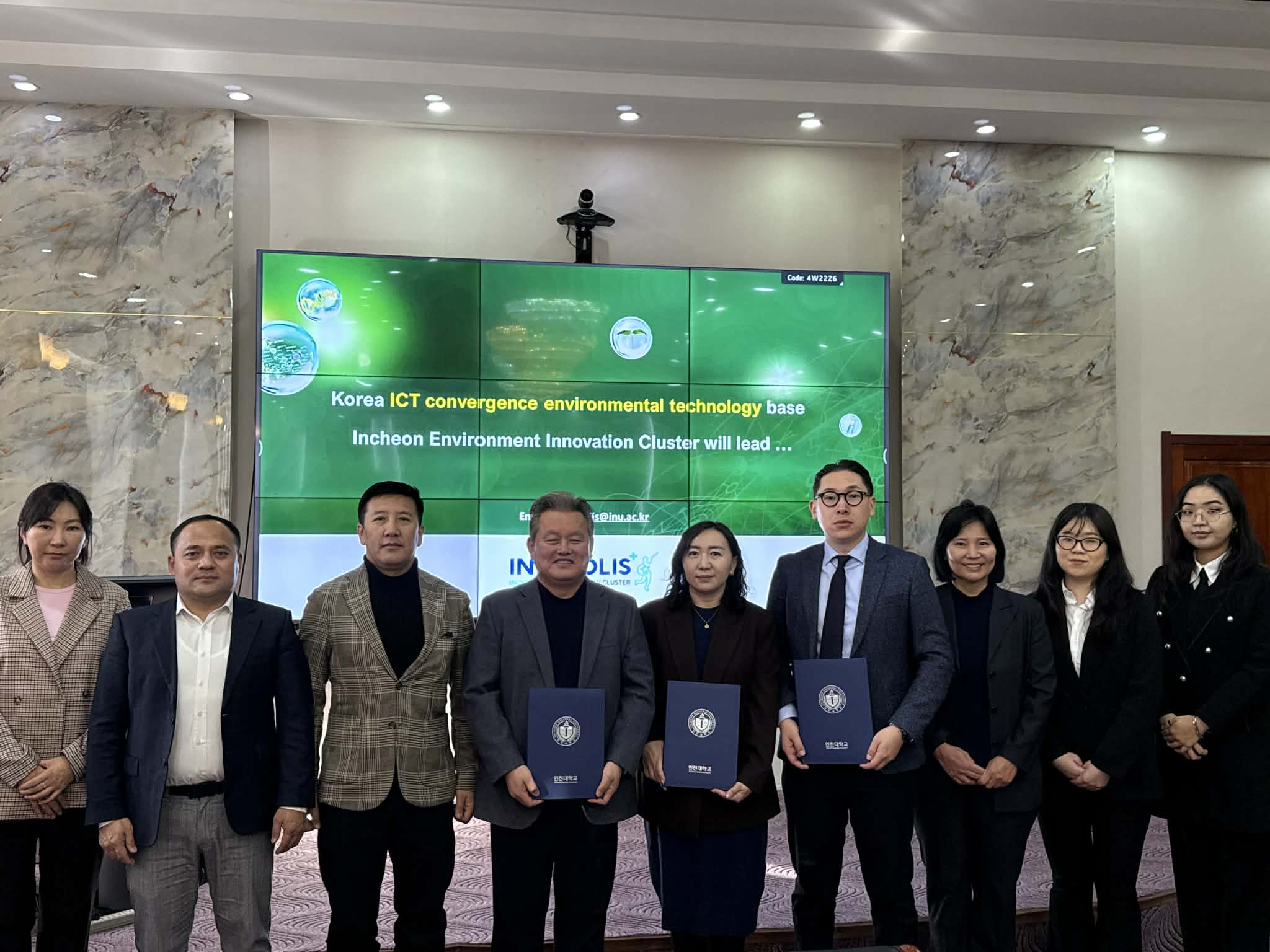 On February 25, 2026, the Incheon Innovation Cluster (IIC), Republic of Korea, Institute of Environmental Convergence Technology, Incheon National University, Republic of Korea, hereinafter referred to as “IECT”, the Center for the Environmental Technology and Development, National University of Mongolia, and the Business and Innovation Agency Implementing Agency of the Capital City Governor, Mongolia signed a Memorandum of Understanding (MoU) on the establishment of an “IIC / Incheon Innovation Cluster” branch office.