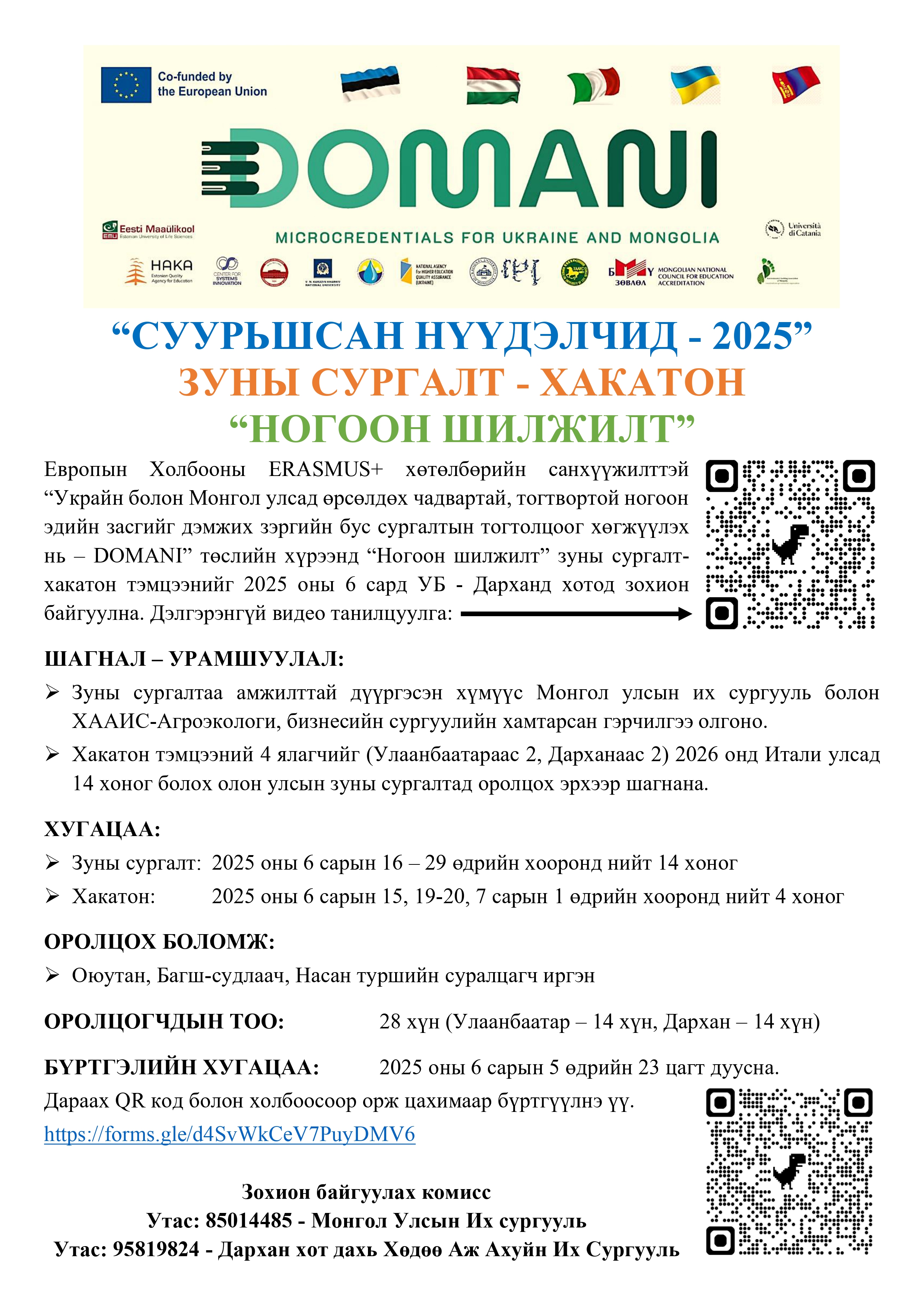 - Хакатон: 2025 оны 6 сарын 15, 19-20, 7 сарын 1 өдрийн хооронд нийт 4 хоног