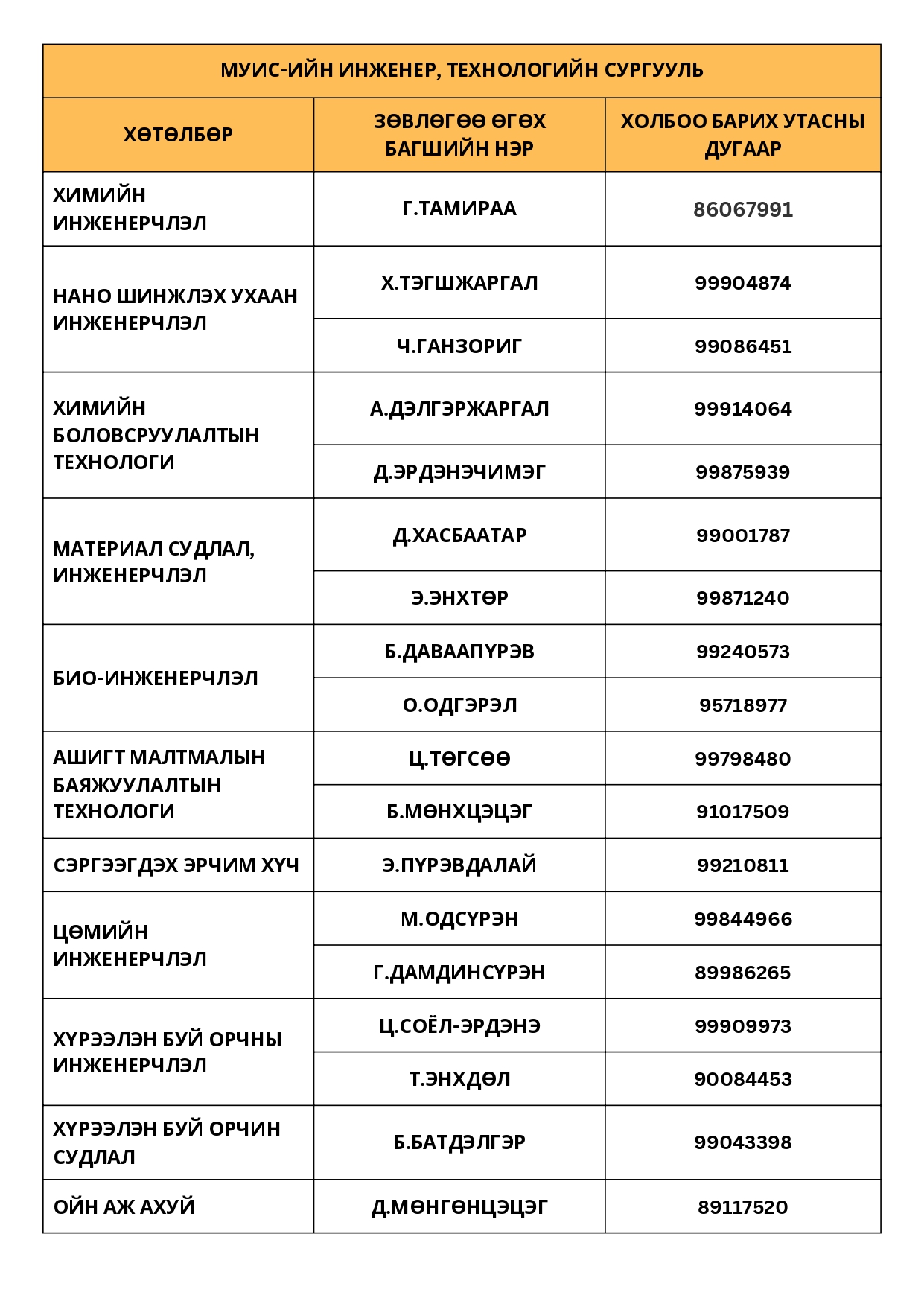 03/20, 2026Улсын химийн XXXV олимпиадын оюутны А, Б бүлэгт МУИС-ийг төлөөлөн оролцох оюутнуудыг сонгон шалгаруулалтад урьж байна.