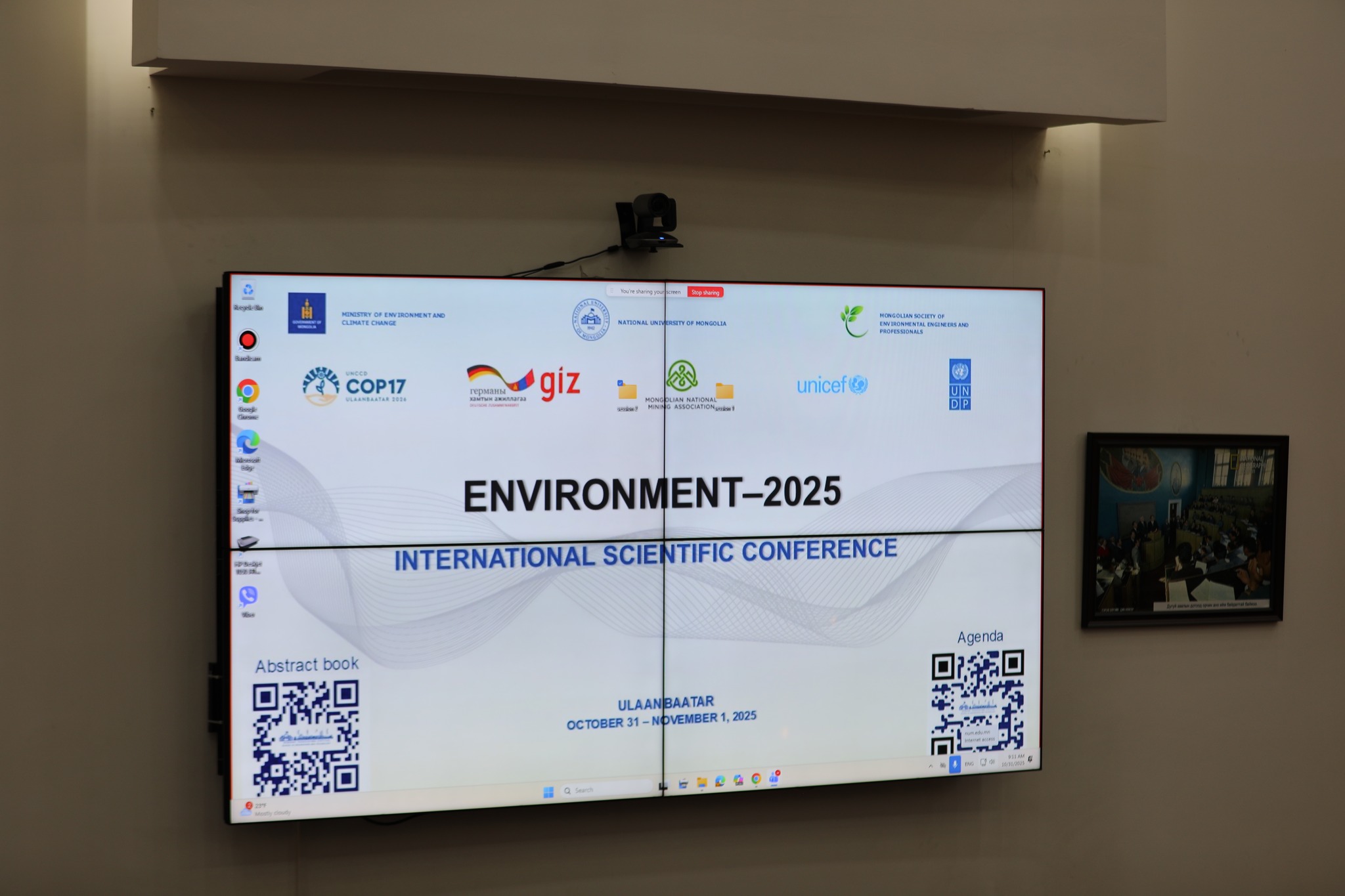 Байгаль орчин, уур амьсгалын өөрчлөлтийн яам, Монгол Улсын Их Сургууль болон Монголын Хүрээлэн буй орчны инженер мэргэжилтнүүдийн нийгэмлэг хамтран зохион байгуулсан “Хүрээлэн буй орчин – 2025” олон улсын эрдэм шинжилгээний хурал 2025 оны 10 дугаар сарын 31-нээс 11 дүгээр сарын 1-ний өдрүүдэд МУИС-ийн Төв байрны Дугуй танхимд амжилттай болж өнгөрлөө.