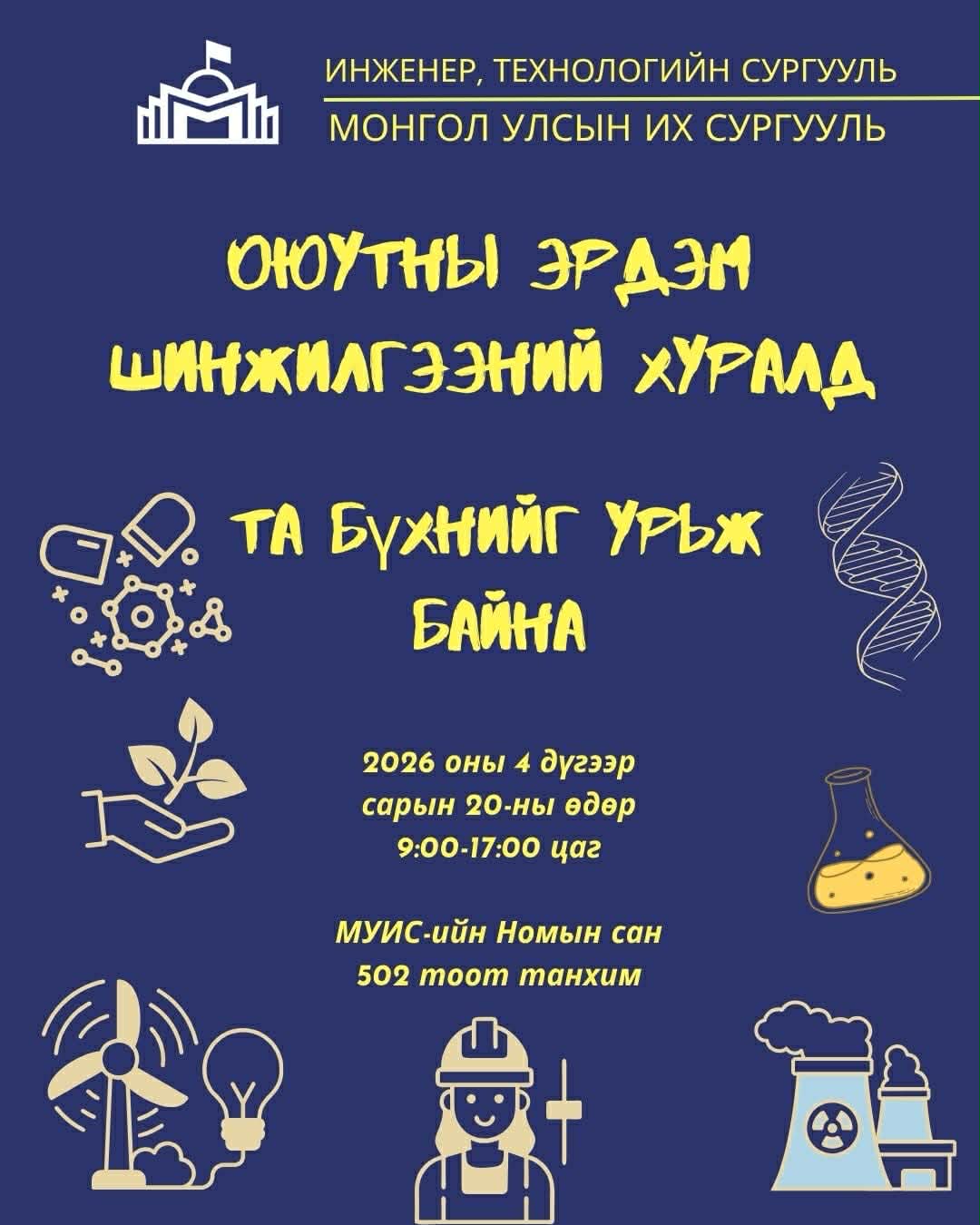 Инженер, Технологийн сургуулийн 2025-2026 оны хичээлийн жилийн “Оюутны эрдэм шинжилгээний хурал 2026” нь 04 дүгээр сарын 20-ний өдөр 09 цагаас Номын сангийн 502 тоотод зохион байгуулагдах гэж байна.