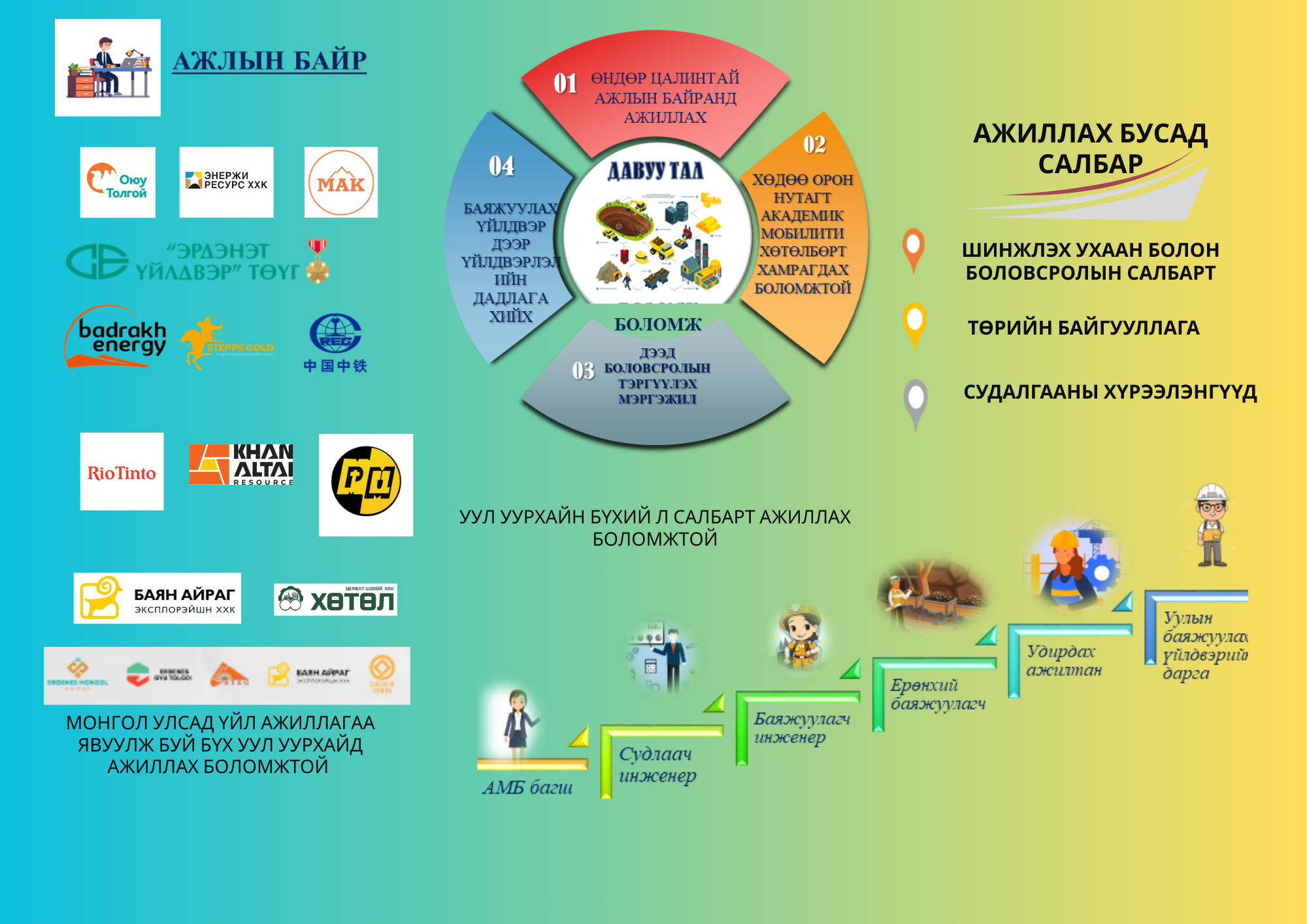 Хамтын ажиллагааныхаа хүрээнд Уул уурхайн салбарын дундаж цалингаас дээгүүр цалинтай үйлдвэрүүдэд төгсөгчидөө ажиллуулна.